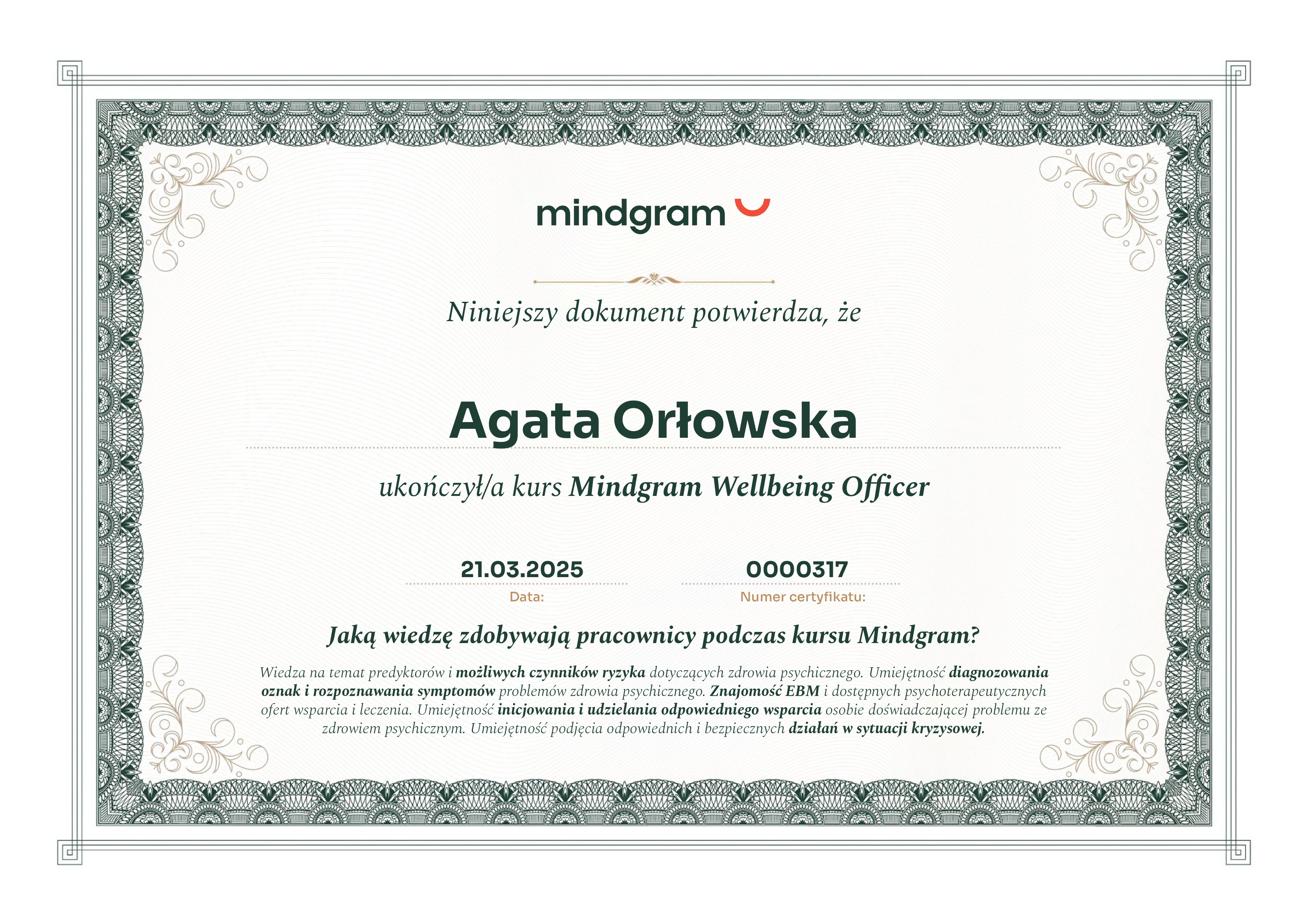 To doświadczenie sprowadziło mnie z powrotem do psychologii — dziś pracuję jako interwentka kryzysowa (Wellbeing Officer) w Mindgram.